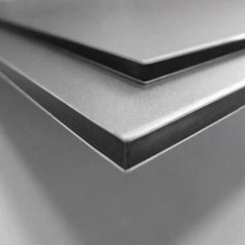 Panel liviano de alta durabilidad, compuesto de dos planchas de aluminio con núcleo de polietileno. Acabado negro mate.